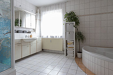 In Größe und Konzeption präsentiert sich Ihnen ein eindrucksvolles Zuhause, dass sich im gesamten ideal für Wohnen im XXL-Format, mit zusätzlichen Mieteinnahmen oder als traditionelles Mehrgenerationen-Wohnen anbietet. Auf Anhieb überzeugen dekorative Fliesen-, Parkett- und Laminatböden, umfangreich ausgestattete Bäder sowie die zwei Einbauküchen mit viel Stauraum. Auf dem großen Balkon und der überdachten Terrasse genießen Sie viel Ruhe und Sonne sowie den Blick auf den weitläufigen Garten und in den drei Garagen finden neben den Autos auch Fahrräder und Gartengeräte reichlich Platz.
