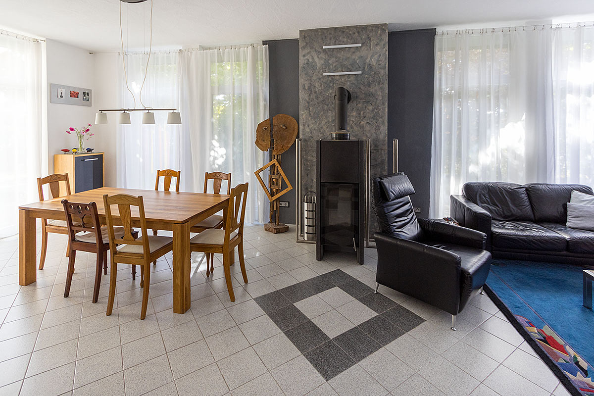 - 5,5 Zimmer, HWR, 2 Küchen, 2 Bäder, 3 WC, Balkon, 2 Terrassen, Kaminofen