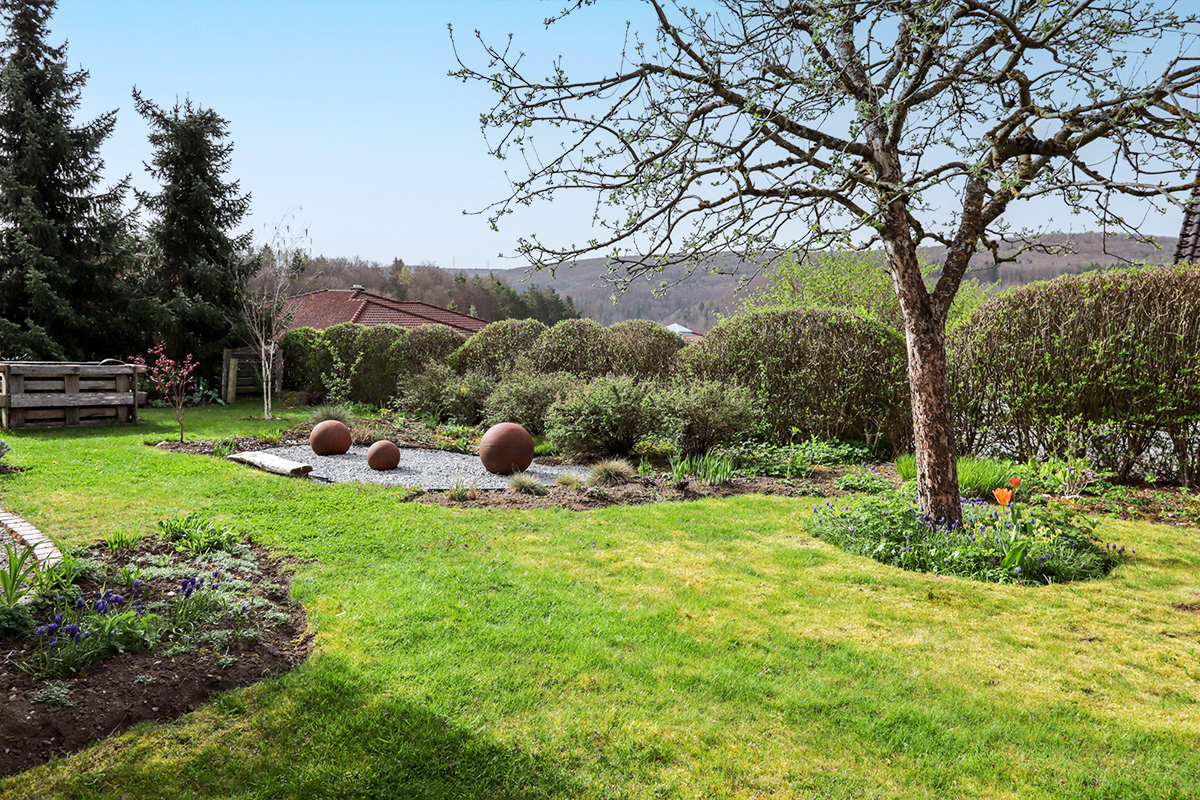 In exponierter Höhenlage mit herrlichen Garten und weiten Aussichten, finden Sie Ihren neuen Lebensmittelpunkt.