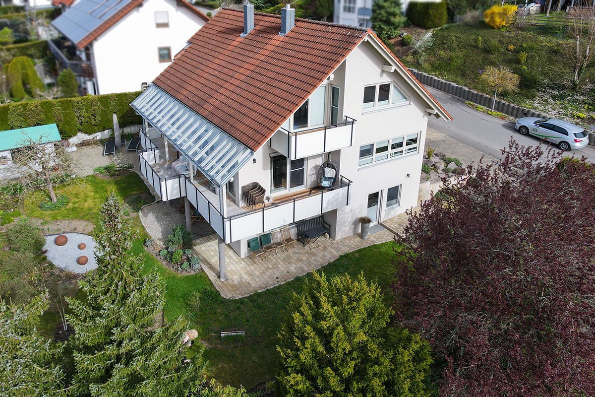 In exponierter Höhenlage mit herrlichem Blick über die Dächer von Zwiefalten präsentiert sich dieses exklusive Domizil. Die Architektur und Ausstattung zeugt von höchster Qualität und wurde mit viel Liebe zum Detail gestaltet. Beim Betreten des Hauses begeistern auf Anhieb edle Parkett-, Steinmehl- und Vinylböden sowie Kalk- und Marmorputz, sie verleihen dem Haus einen Hauch von Luxus und tauchen die Räume in eine warme Atmosphäre. Ein Grundofen sorgt in der kalten Jahreszeit für kuschelige Wärme und die riesigen bodentiefen Fenster sorgen für viel natürliches Licht. Die Küche präsentiert sich in hochmoderner Ausstattung, ebenso wie das vor Kurzem renovierte zweite Bad im DG. Im Gartengeschoss des Hauses befinden sich die Büros, die ohne weiteres auch als zusätzlicher Wohnraum genutzt werden können und unter der Garage ist eine Werkstatt. Das DG bietet außerdem flexible Nutzungsmöglichkeiten. Ob für Kinder, mehrere Generationen oder zusätzliche Mieteinnahmen hier ist alles möglich. In unmittelbarer Nähe ist das Freibad und ein Spielplatz und auch alle Einkaufsmöglichkeiten für den täglichen Bedarf, sind bequem zu Fuß zu erreichen.