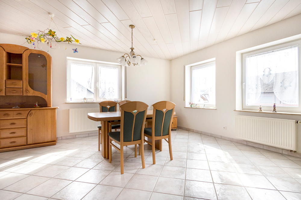 Ob Sie dieses Domizil als Zuhause für eine große Familie mit mehreren Generationen nutzen möchten, als Renditeobjekt mit zusätzlichen Mieteinnahmen oder als langfristige Kapitalanlage, hier finden Sie die ideale Kombination aus Wohnqualität, Flexibilität und Wertsteigerungspotenzial. Dieses Anwesen aus dem Jahr 1974 wurde 1997 durch einen großzügigen Anbau erweitert und bietet drei individuelle Wohneinheiten. Im EG erwartet Sie eine weitläufige 3-Zimmer-Wohnung mit einer einladenden Terrasse. Zusätzlich befindet sich hier ein separates Zimmer mit einem bereits vorbereiteten Bad, das Sie ganz nach Ihren Vorstellungen fertigstellen können. Das OG beherbergt eine geräumige 4,5-Zimmer-Wohnung mit Wintergarten und einem großen überdachten Balkon. Die dritte Wohnung erstreckt sich über OG und DG und verwöhnt mit zwei Bädern, einer modernen Einbauküche und einem Kachelofen. Der schöne Garten rund ums Haus lädt zum Verweilen ein, hier können Kinder spielen und Familien Feste feiern und in den drei Garagen gibt es reichlich Platz für Autos, Fahrräder und mehr.