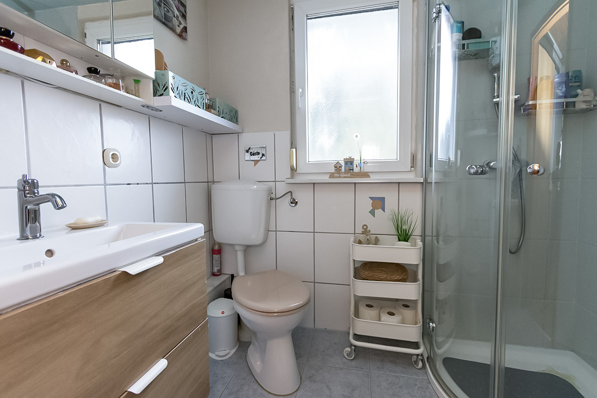 Das Badezimmer überzeugt mit einer modernen Ausstattung.