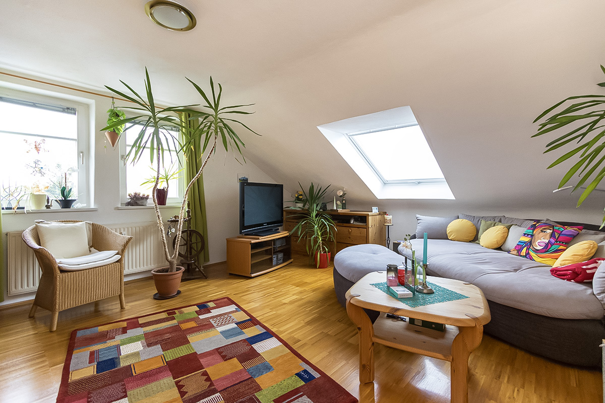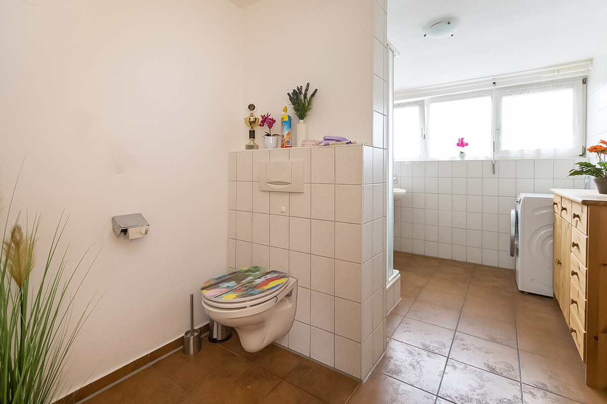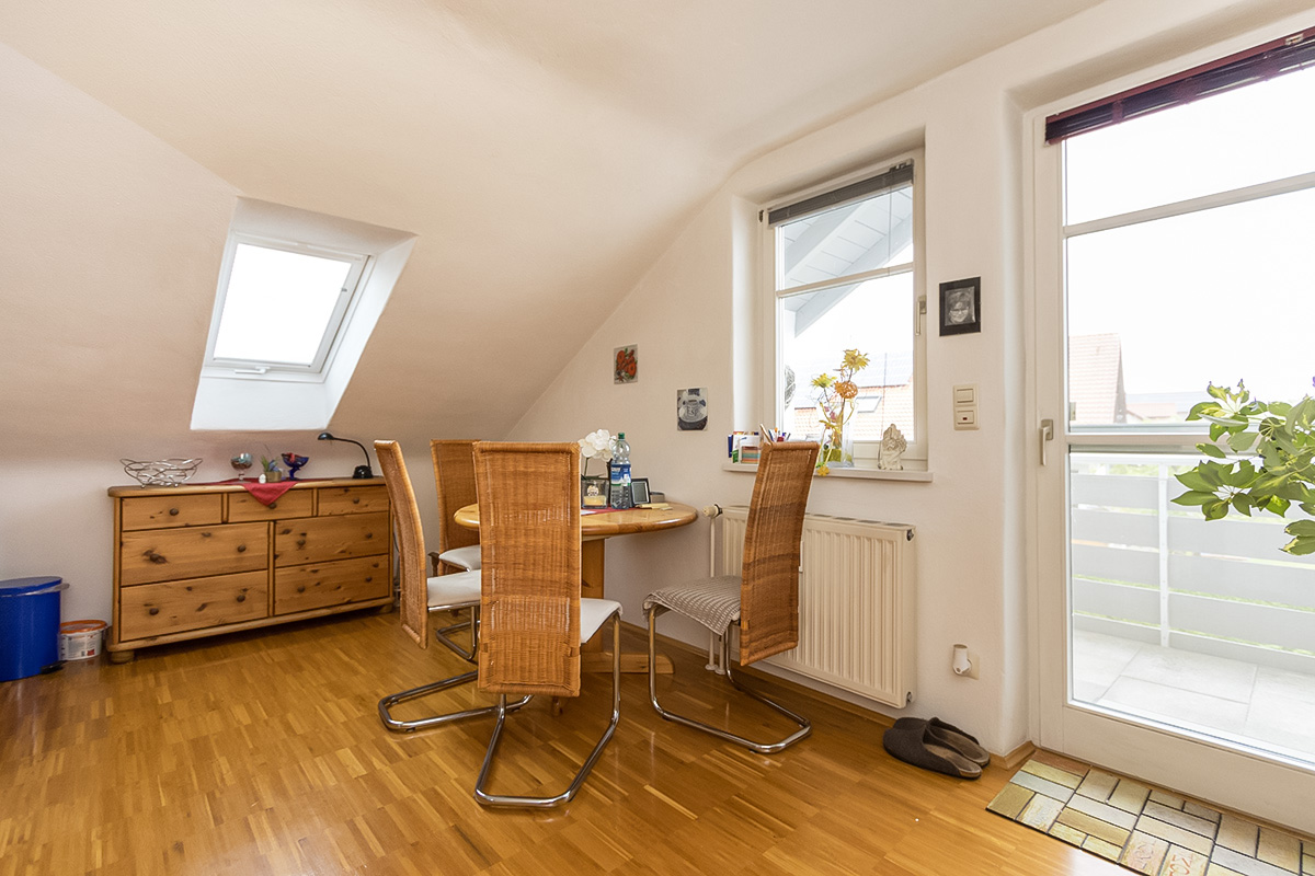 - DG: 2 Zimmer, Küche mit Einbauküche, Bad, WC, überdachter Balkon