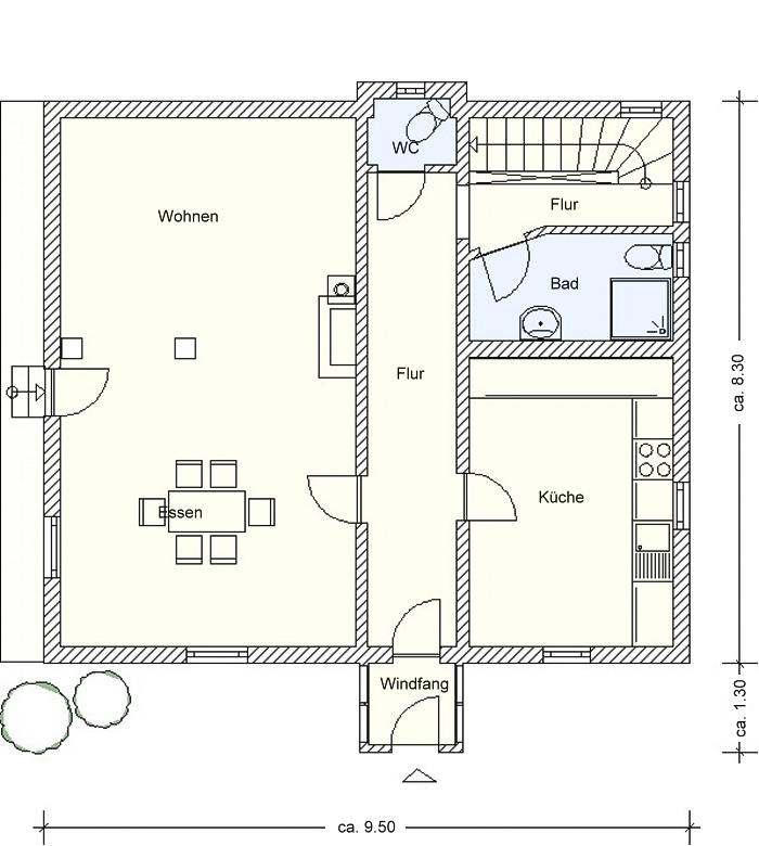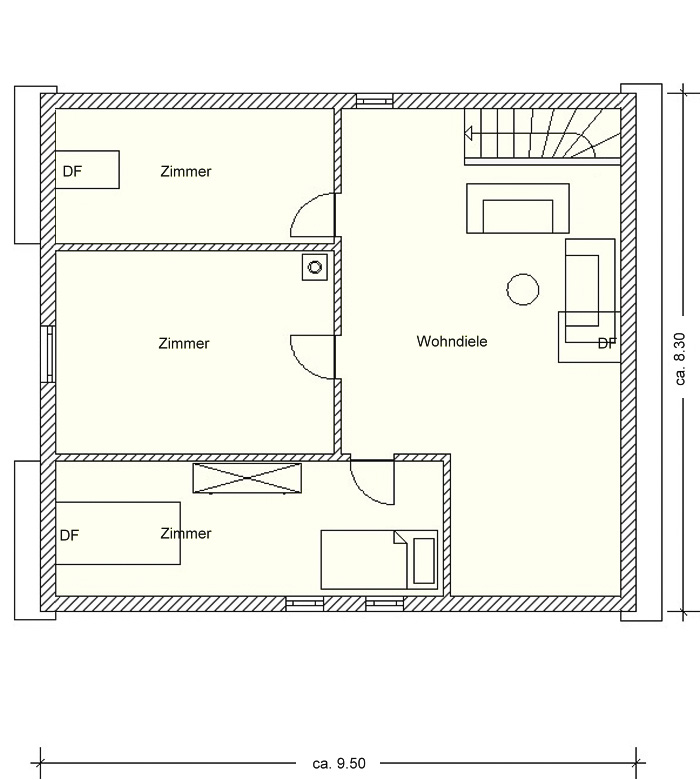- ca. 105 m² Wohnfläche, 5 Zimmer, Küche, Bad, 2 WC. teilunterkellert