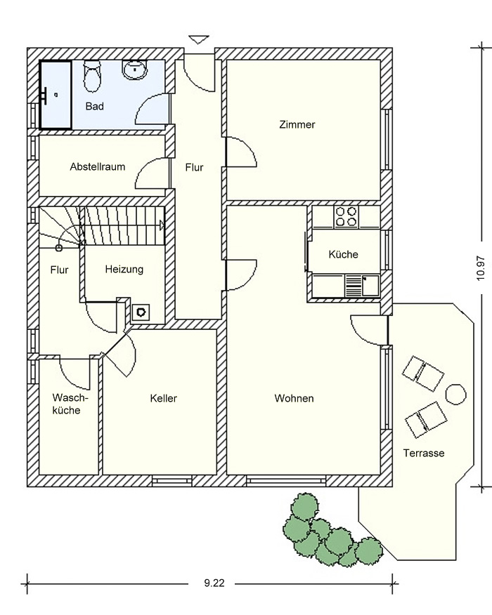 In ruhiger Lage am Ende einer Sackgasse begeistert dieses Domizil durch die Kombination aus großzügigem Raumangebot, gepflegtem Wohnkomfort und idyllischem Garten. Die frisch renovierte Einliegerwohnung überzeugt mit hochwertigen Vinylböden, einem neuen Bad, der modernen Einbauküche und dem direktem Zugang zur Terrasse, perfekt für Familienangehörige oder zur lukrativen Vermietung. Die Hauptwohnung besticht durch ihren lichtdurchfluteten Wohn- und Essbereich mit Balkon und direktem Zugang in den Garten. Zwei weitere Zimmer, ein umfangreich ausgestattetes Bad, ein Gäste-WC sowie die Küche vervollständigen das EG. Im DG eröffnen zwei große Zimmer, eine Küchenzeile und ein zusätzliches WC unzählige Nutzungsmöglichkeiten, ob für Gäste, Homeoffice oder als eigener Rückzugsort. Der liebevoll angelegte Garten bietet einen hohen Erholungswert. Obstbäume spenden im Sommer wohltuenden Schatten, ein idyllischer Laubenfreisitz mit Reben lädt zum Verweilen ein und das praktische Gartenhaus sorgt für zusätzlichen Stauraum.