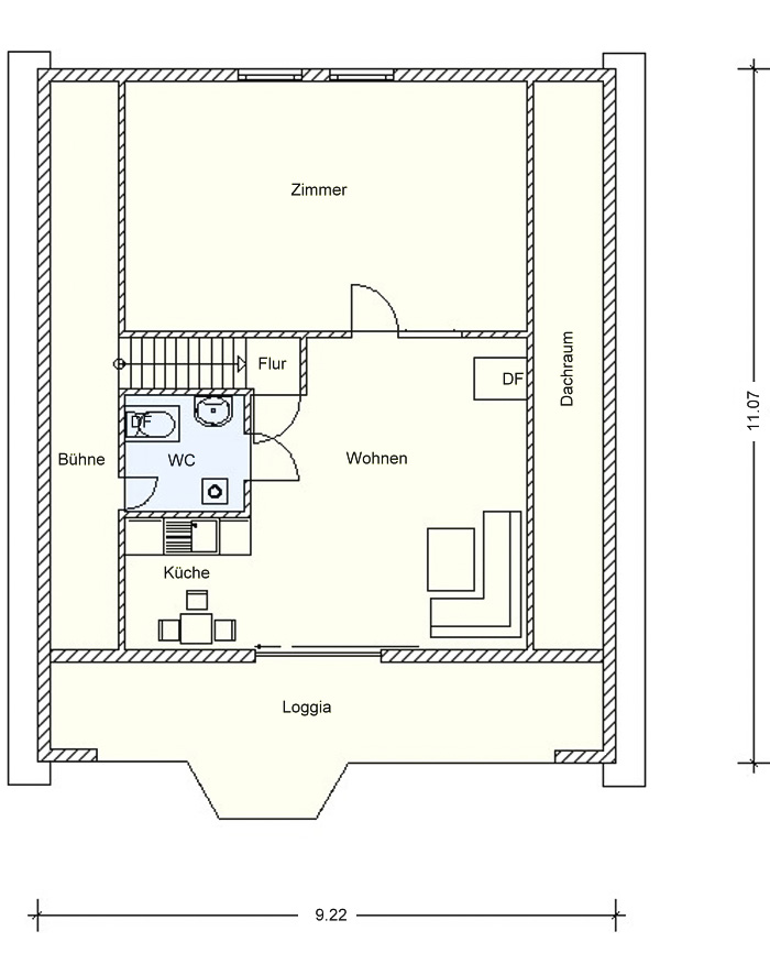 Im DG sorgen zwei große Zimmer mit Küchenzeile und WC für Wohnkomfort.