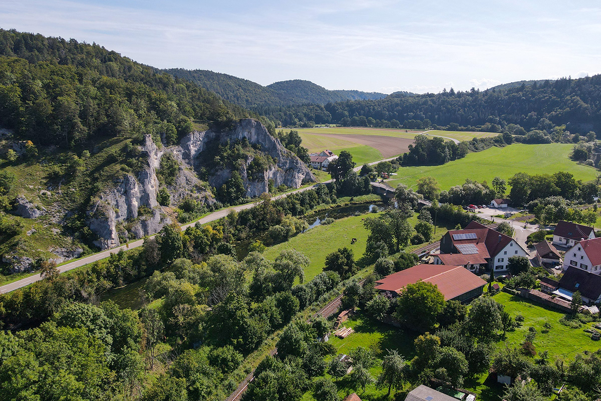 Gutenstein, ein idyllischer Ortsteil von Sigmaringen im Landkreis Sigmaringen, liegt malerisch in einer Donauschleife im Naturpark Obere Donau und ist geprägt von bewaldeten Höhen, markanten Felsformationen und der einzigartigen Landschaft der Schwäbischen Alb. Die ruhige Lage der Immobilie am Ortsrand verbindet naturnahes Wohnen mit guter Erreichbarkeit: Über die Bahnstation Gutenstein an der Donautalbahn besteht eine direkte Anbindung Richtung Sigmaringen und Ulm sowie nach Tuttlingen und Donaueschingen, zusätzlich verkehren Buslinien in die umliegenden Ortschaften. Im Ort selbst gibt es einen Kindergarten, Gästehäuser, Zeltplatz und verschiedene Freizeitangebote. Wanderer und Radfahrer profitieren von Premiumwegen wie der Bettelküchenfährte oder dem Donaufelsengarten sowie dem internationalen Donauradweg, der jährlich tausende Besucher anzieht. Besonderheiten wie die Burgruine „Gebrochen Gutenstein“, Grillplätze, Bootsverleih und die eindrucksvolle Donaulandschaft schaffen hohen Freizeitwert. Einkaufsmöglichkeiten, Schulen, ärztliche Versorgung und weitere Infrastruktur sind in wenigen Minuten im nahegelegenen Sigmaringen erreichbar, sodass sich die Lage perfekt für Naturliebhaber eignet, die gleichzeitig nicht auf eine gute Anbindung und Versorgung verzichten möchten.