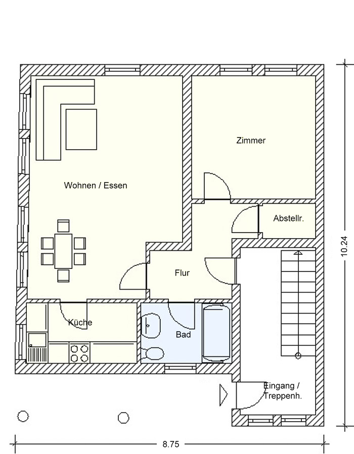 • ca. 52 m² Wohnfläche, 2,5 Zimmer, Küche mit Einbauküche, Bad, WC, Abstellraum