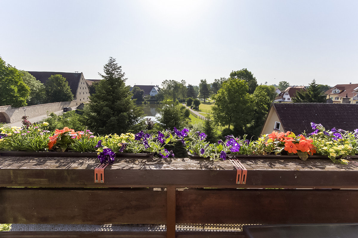Die beiden Balkone bieten traumhafte Aussichten auf den malerischen Mühlweiher.