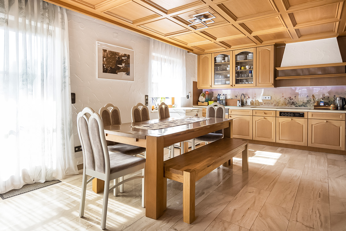 Klassiker mit Charakter,Holz und Marmor vereinen Eleganz und Beständigkeit auf harmonische Weise.
