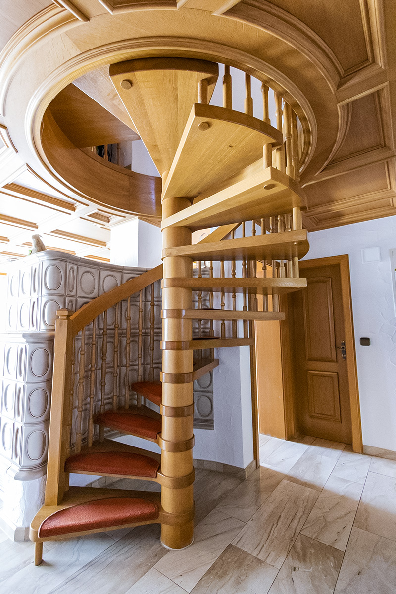 Mit architektonischer Raffinesse führt die Wendeltreppe nach oben.