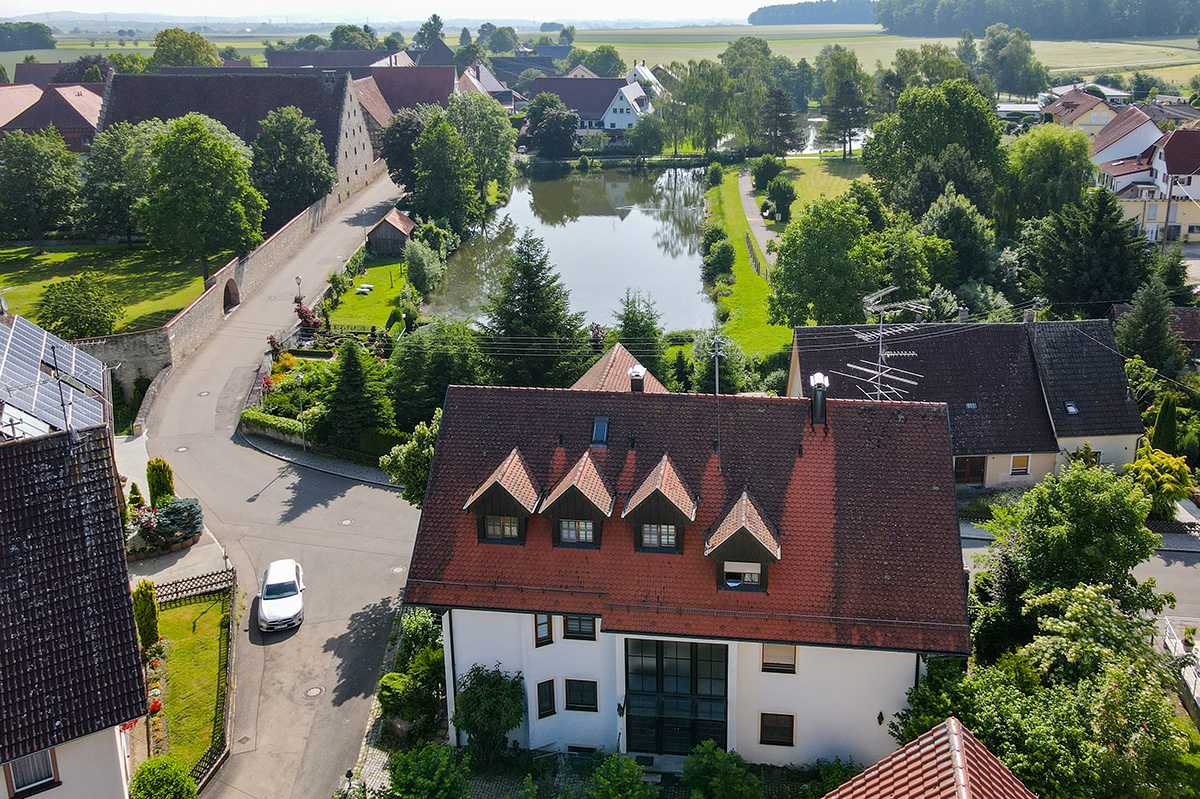 Nur wenige Kilometer von Riedlingen entfernt, liegt Heiligkreuztal im flachen Soppenbachtal – ein malerischer Ortsteil der Gemeinde Altheim im Landkreis Biberach, mit rund 260 Einwohnern. Weit bekannt ist Heiligkreuztal für das hervorragend erhaltene Zisterzienser-kloster, heute kulturelle Bildungsstätte mit historischem Münster St.?Anna. Rund um die Weiheranlage und den Hohmichele (einer der größten keltischen Grabhügel Mitteleuropas) entfalten sich Wander-, Rad- und Spazierwege sowie der Bruder-Klaus-Visionenweg und eine Waldschule. Infrastruktur und Gemeinschaft: Die Gemeinde Altheim bietet Grundschule, Kindergarten und aktives Vereinsleben. Die Immobilie liegt in zentraler jedoch ruhiger Wohnlage mit herrlichem Blick auf den Mühlweiher.