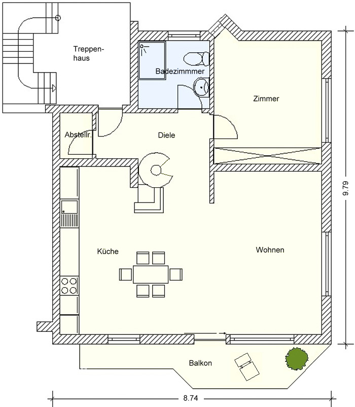 - 3,5 Zimmer, Einbauküche, 2 Bäder, 2 WC, 2 Balkone, Abstellraum, Kellerabteil, Fußbodenheizung, Kachelofen