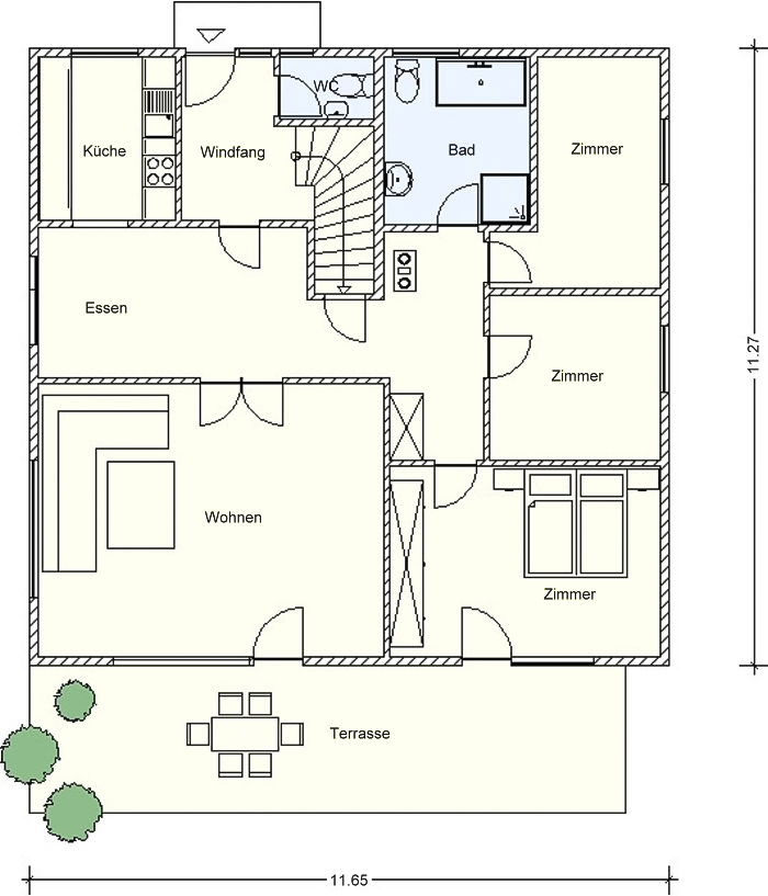 - EG: 4,5 Zimmer, Küche, Bad, WC DG: 2 Zimmer, Küche, Bad, WC UG: 1 Zimmer