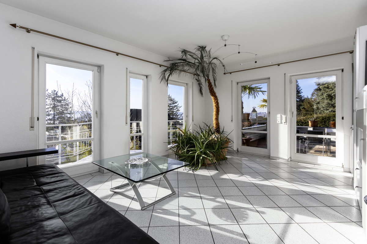 - Hauptwohnung ca. 140 m² Wohnfläche, 5 Zimmer, Bad, Gäste-WC, Küche, Abstellraum, Heizraum/Waschküche, Keller, 2 Balkone, Terrasse, große Doppelgarage mit Zugang zum Haus – V, 117 kWh, Gas-ZH, Klasse D, Baujahr 1992