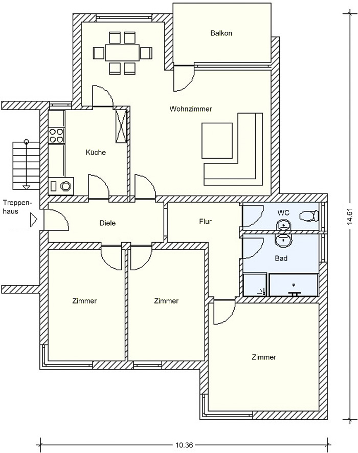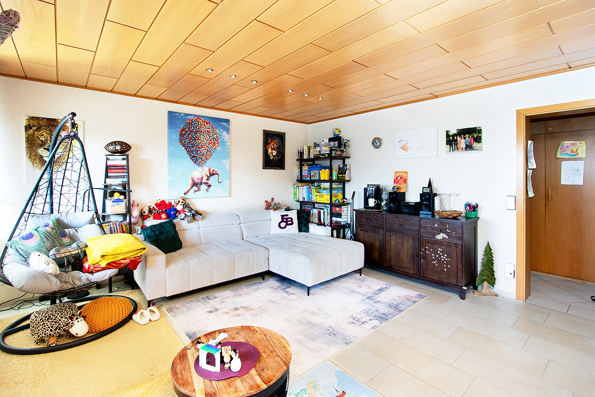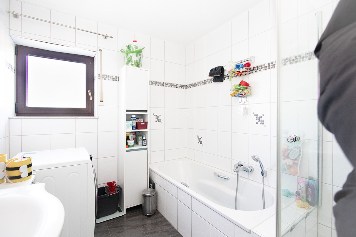 - 4,5 Zimmer, Einbauküche, Bad, sep. WC, Kelleraum, Garage mit Stellplatz, 1 Balkon