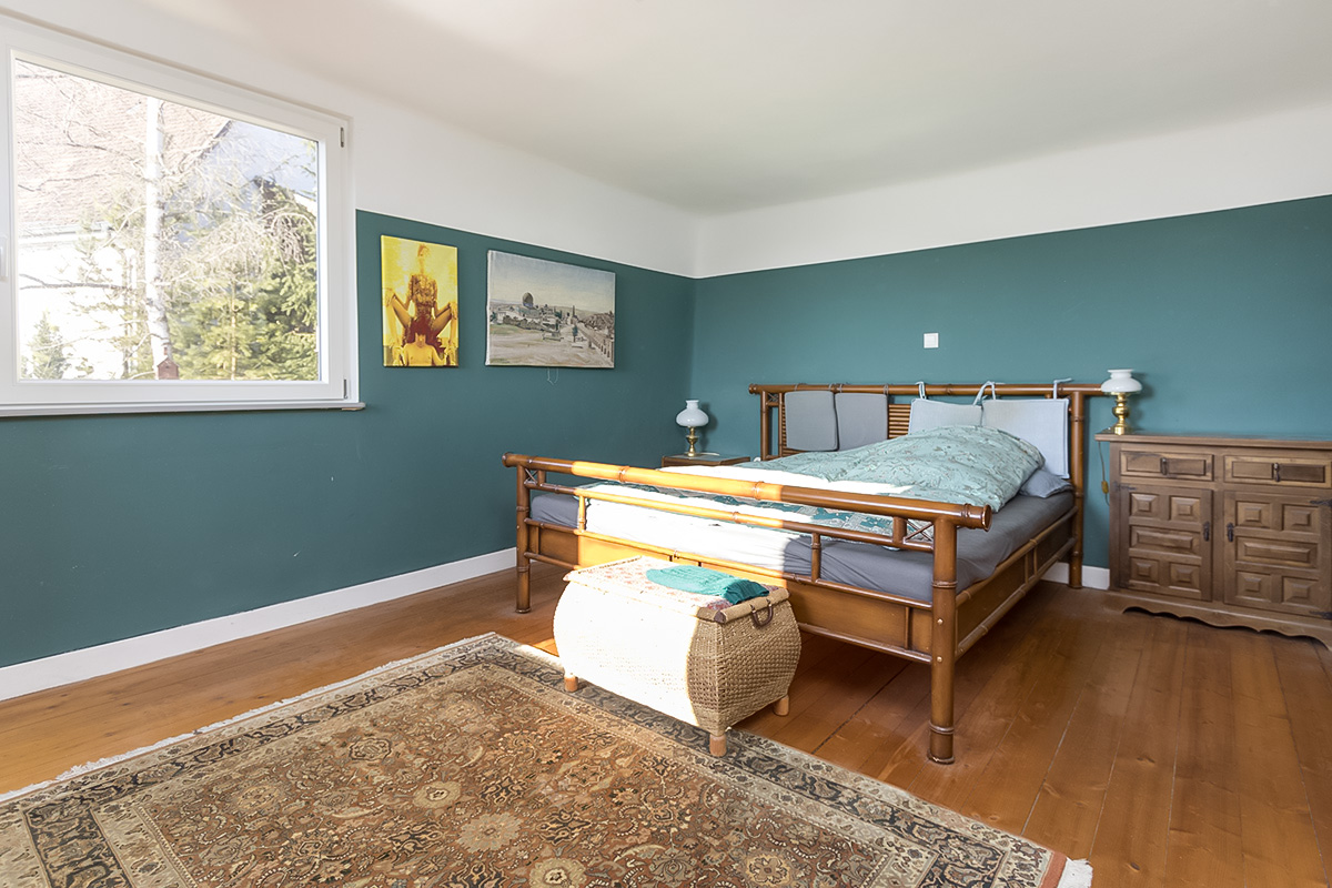 - Ca. 160 m² Wohnfläche, 5,5 Zimmer, Küche, Bad, 2 WC, Terrasse, Kaminofen, 2 Garagen