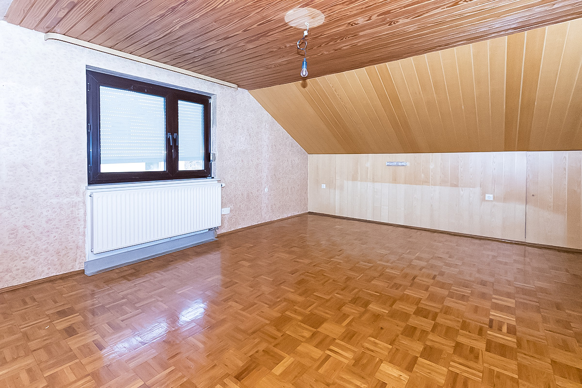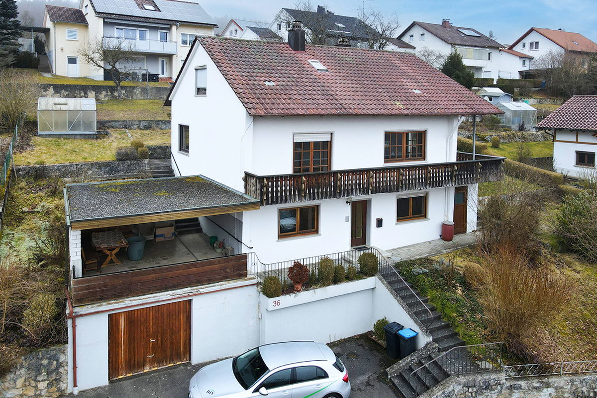 Dieses großzügige Heim ist das ideale Zuhause für Familien, die Wert auf Raum, Komfort und naturnahes Wohnen legen. Umgeben von einem schönen Garten genießen Sie hier Freiraum, Privatsphäre und viel Platz für gemeinsame Momente im Grünen. Die große, überdachte Terrasse über der Garage erweitert den Wohnraum nach draußen und wird schnell zum Lieblingsplatz für entspannte Abende oder Familienfeste. Auf ca. 165 m² Wohnfläche überzeugt das Haus mit einem durchdachten Grundriss und hellen, offenen Räumen. Mittelpunkt ist der weitläufige Wohn- und Essbereich im EG mit Balkon und herrlichem Blick in die Natur. Die Wohnküche, ein Bad sowie ein weiteres flexibel nutzbares Zimmer ergänzen diese Ebene. Im ausgebauten DG stehen drei Schlaf- bzw. Kinderzimmer und ein weiteres Bad zur Verfügung. Rückzugsorte für jedes Familienmitglied. Zwei zusätzliche Räume im UG bieten ideale Möglichkeiten für Homeoffice, Gäste oder Hobby und Dank der Hanglage präsentiert sich das UG als vollwertiges Geschoss mit angenehmer Wohnqualität.