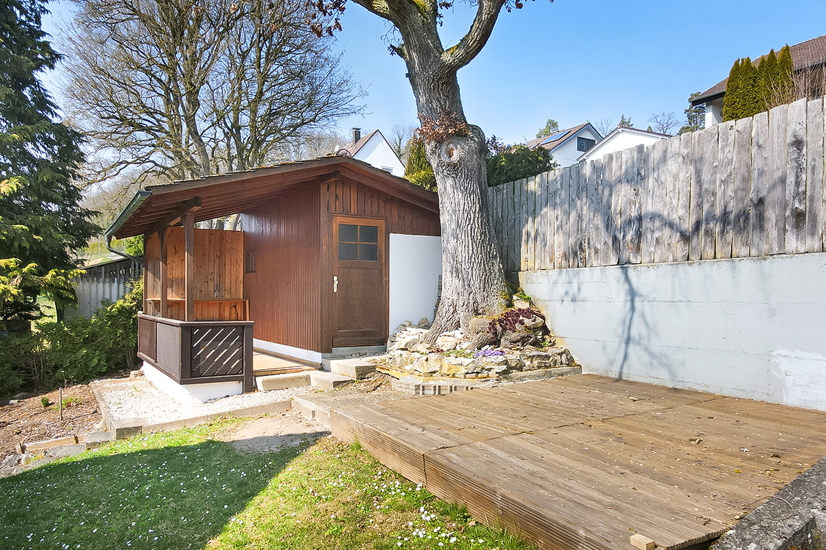 • ca. 90 m² Wohnfläche, Terrasse Gartenhaus, Doppelgarage, Hobbyraum B, 290,78 kWh, E/Hz, Kl. H, Baujahr 1937