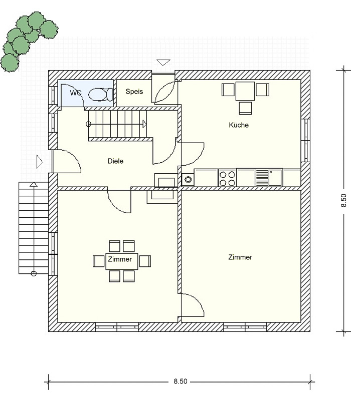 • 3 Zimmer, Küche, Speis, Bad, 2 WC, Kachelofen 1989 Kernsanierung: Elektrik, Heizung, Fenster